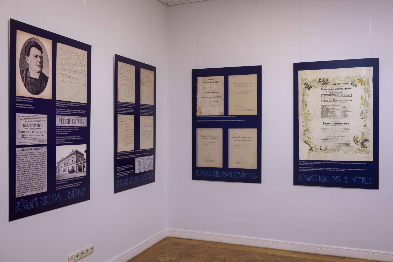Ekspozīcijas pamatā ir plaša pētnieciska darba rezultāti Latvijas arhīvos, kas vainagojās ar sensacionālu atklājumu. Daudzus gadu desmitus par oficiālo Rīgas krievu teātra dibināšanas datumu tika uzskatīts 1883. gada 2. oktobris, kas saistīts ar A. A. Lavrova antreprīzi. Tomēr jaunie arhīvu dokumenti pārliecinoši pierāda, ka pirmais krievu teātris Rīgā sāka darbību jau 1873. gadā, antreprenera N. I. Ivanova vadībā.