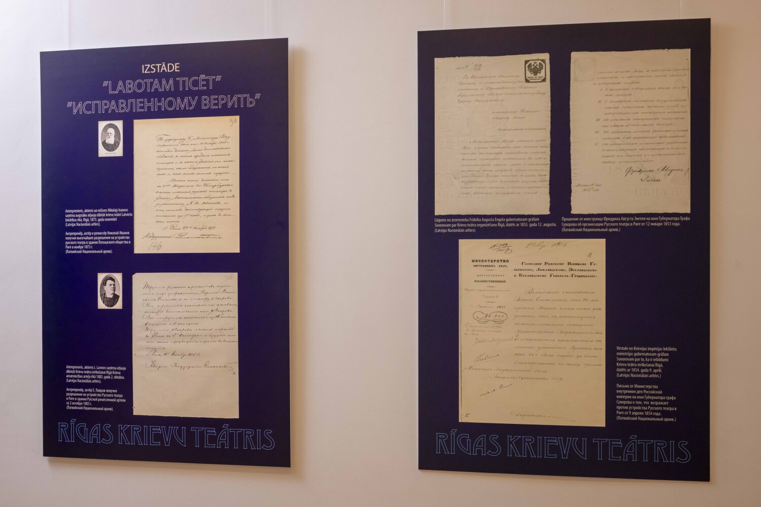 Mākslas galerija Museum LV piedāvā unikālu izstādi “Labotajam ticēt”, kas veltīta gandrīz septiņdesmit gadu ilgajai krievu teātra veidošanās un attīstības vēsturei Latvijā — no pirmajām antreprīzēm līdz 1940. gadam.